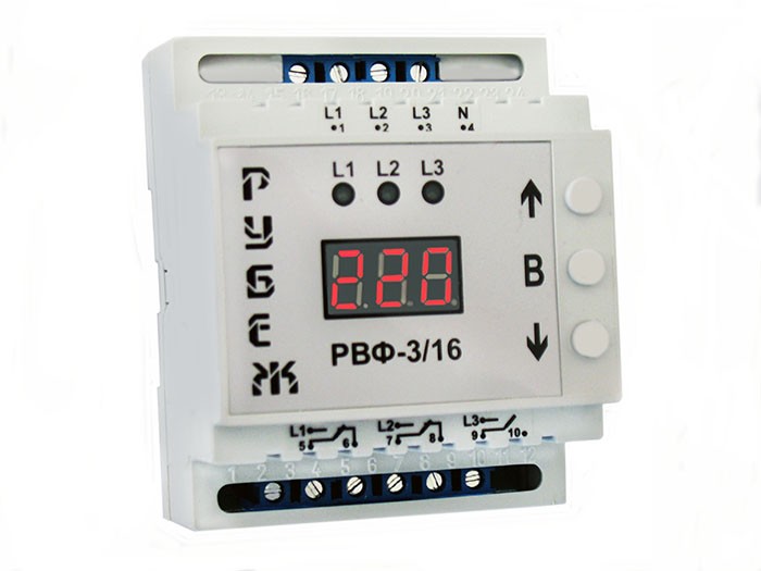 Реле вибору фаз РВФ-3/16 надалі прилад, призначений для живлення промислового або побутового однофазного навантаження 220В/50Гц від трифазної чотирипровідної мережі 3×380+N, з метою забезпечення безперебійного живлення однофазних споживачів та захисту від недопустимих коливань напруги.