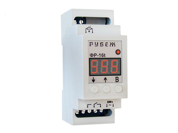 Фотореле ФР-16t надалі прилад, призначений для керування освітлювальними приладами в залежності від освітленості навколишнього середовища. Має точне цифрове налаштування рівня освітленості, регульований гістерезис, затримку на зміну стану контактів (увімк./вимк.) та таймер на вимкнення. Також пристрій має три режими роботи on/AU/oFF. Вимірювання здійснюється за допомогою виносного датчика високої чутливості (фоторезистор 5-10kOhm/0.5MOhm), що дозволяє дуже точно контролювати момент увімкнення та відключення навантаження.