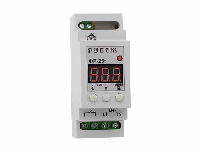 Фотореле ФР-25t надалі прилад, призначений для управління освітлювальними приладами в залежності від освітленості навколишнього середовища. Має точне цифрове налаштування рівня освітленості, регульований гістерезис, затримку на зміну стану контактів (увімк./вимк.) та таймер на вимкнення. Також пристрій має три режими роботи on/AU/oFF. Вимірювання здійснюється за допомогою виносного датчика високої чутливості (фоторезистор 5-10kOhm/0.5MOhm), що дозволяє дуже точно контролювати момент увімкнення та відключення навантаження.
