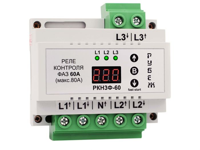 Реле контролю напруги РКН3Ф-60, надалі прилад, дозволяє контролювати навантаження 60А (макс. 80А), без допоміжного контактора.