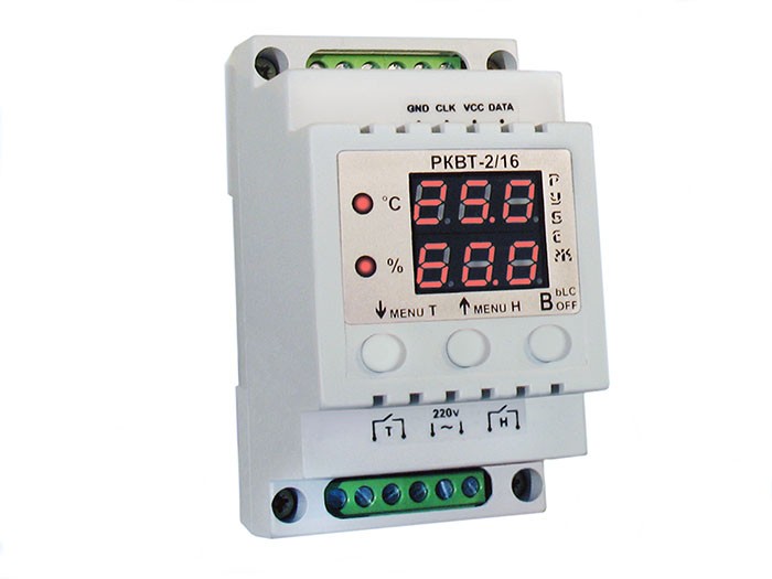 Реле контролю вологості та температури РКВТ-2/16 надалі прилад, призначений для автоматичної підтримки відносної вологості та температури, має два незалежні реле.