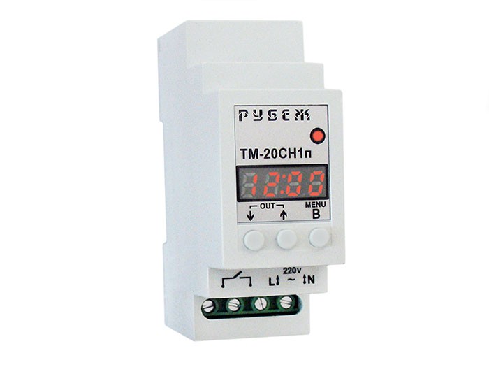 ТМ-20СН1п надалі прилад, призначений для включення та відключення навантаження за заданим часом доби. Прилад має вбудований годинник із запасом ходу та таймер (добовий або тижневий режим), який дозволяє встановити до 63 тимчасових осередків включення та вимкнення навантаження на добу, якщо обрано добовий режим, або до 9 тимчасових осередків включення та вимкнення навантаження на добу, якщо обрано тижневий режим. Також прилад не потребує повторних налаштувань у разі вимкнення електроенергії. Усі налаштування зберігаються в незалежній пам’яті. Прилад має вбудований елемент живлення типу BAT CR 2032-3V, що позбавляє споживача від повторних налаштувань поточного часу в разі зникнення електроенергії. Також споживач може керувати станом контактів реле приладу у ручному режимі (ON/AU/OFF). Перевагою цієї моделі є потужне внутрішньо реле, що дозволяє підключати навантаження до 20А, а також здатність витримувати короткочасні пускові струми до 40А (5сек.).